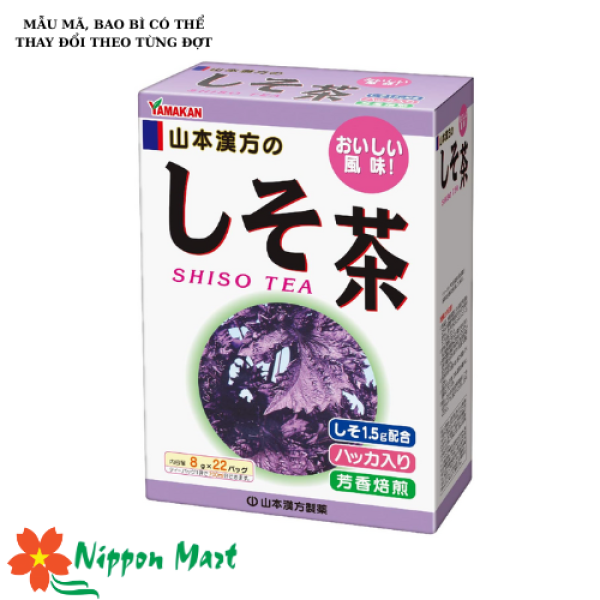 ● "Trà Yamamoto Kanpo Shiso 8g x 22 gói" là trà lá tía tô được pha trộn với lá tía tô, bao gồm trà Job's Tears, trà Habu, trà ô long, đậu nành và bạc hà.